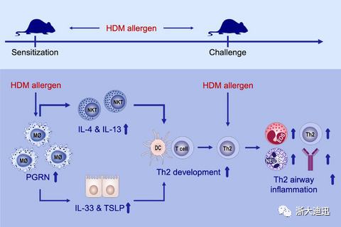 結(jié)論:在致敏早期,氣道中巨噬細胞源性PGRN的存在可能對于啟動Th2免疫反應(yīng)以及通過誘導NKT和氣道上皮細胞中2型細胞因子的產(chǎn)生引起過敏性氣道炎癥途徑至關(guān)重要。